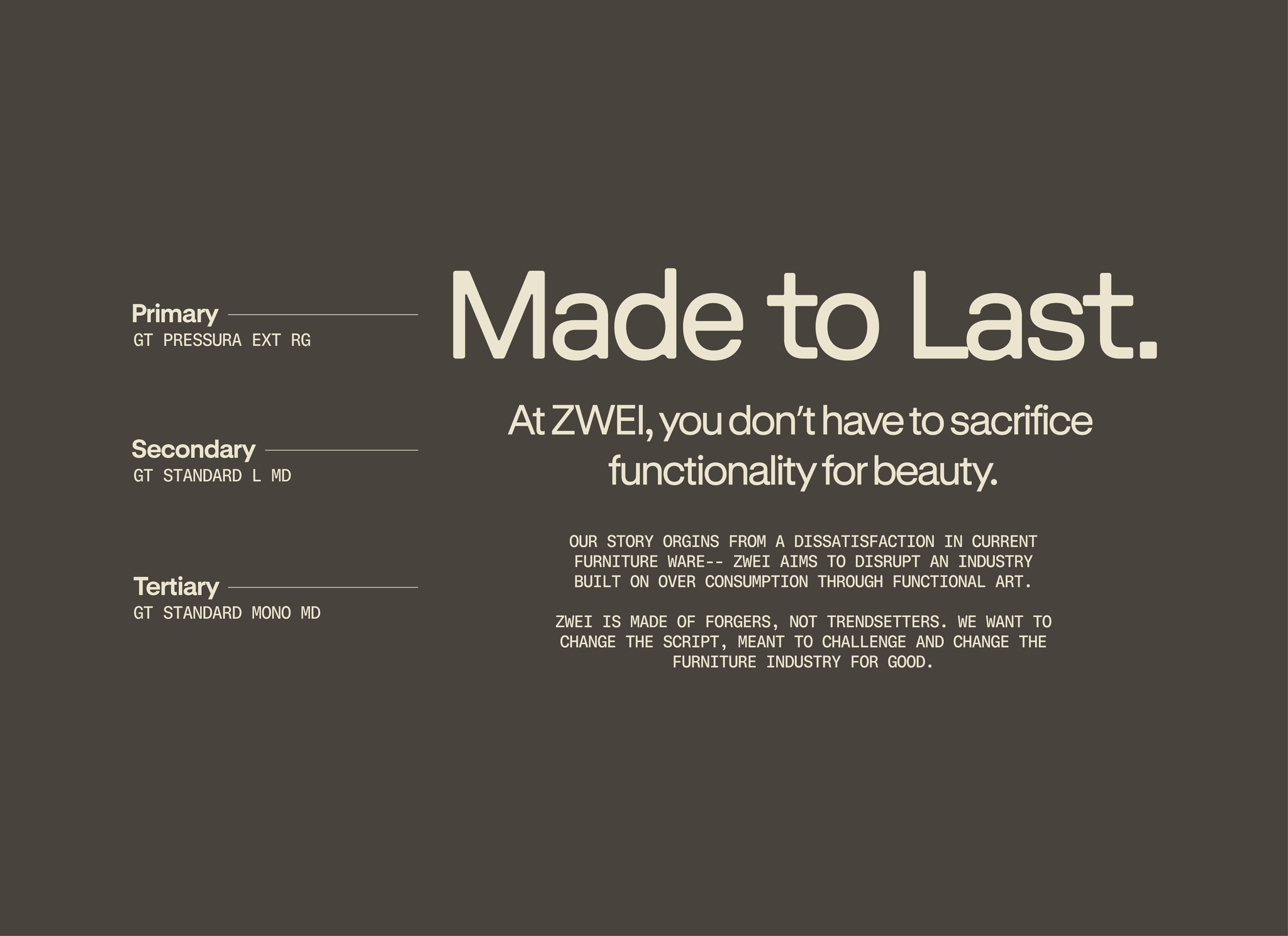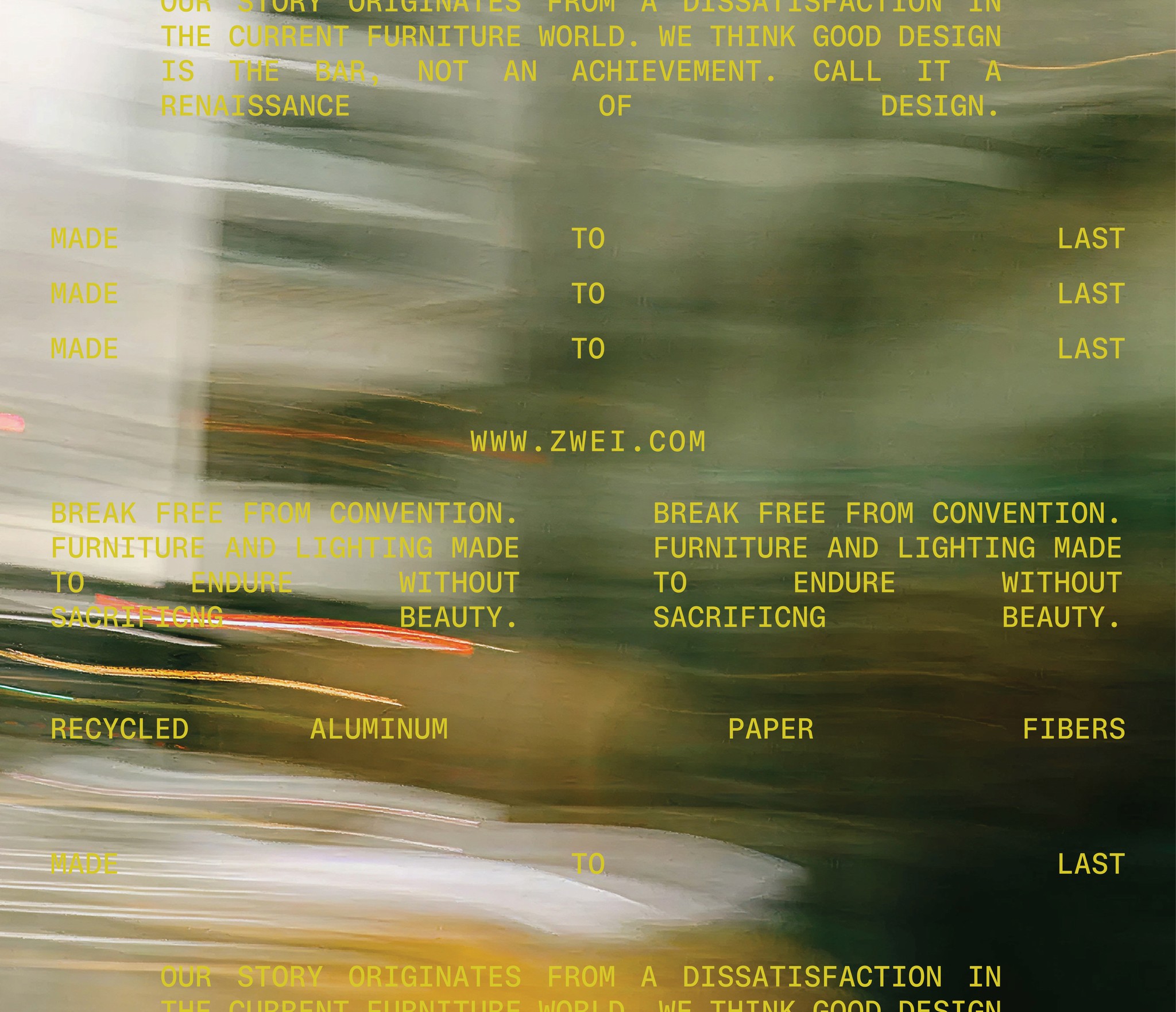 The furniture industry is inherently wasteful. The current market is no longer built on well-made furniture and lighting. Companies design for obsolescence — fast trends, cheap materials, objects that were never meant to last. ZWEI is a renaissance of design, meant to break the cycle that is furniture waste.